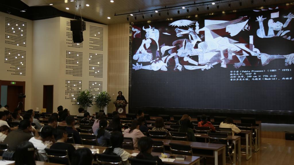 万老师以时间为主线梳理了西方绘画发展的脉络、西方绘画历经多种媒介和材料的革新与转变以及绘画形式的变化。并分析了丁学祥、陈国卫、吴伟华等几位中国知名画家绘画风格的转变,提出,艺术家依据个人兴趣点和审美情趣对所见的事物的再现,并不是简单的临摹,而是作者内心情绪的表达,艺术家对自我创作的思辨,使得绘画作品显示出更鲜活的生命力。