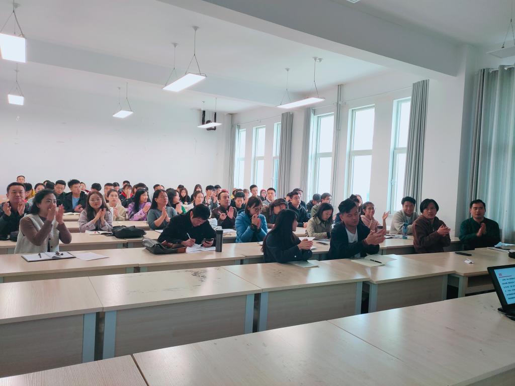 霍老师先从青海十三届省委历次全会回顾开始,为师生们详细梳理了青海省第十三届委员会召开的历次会议及主要会议内容,通过对主要会议精神的解读引出了省委十三届六次全会召开的背景、意义和会议的主要内容。霍老师结合省情及青海解放70年来经济社会发展所取得的重大成就,将省委十三届六次全会的总体要求、目标等内容进行了宣讲。霍老师的宣讲内容深入浅出,通俗易懂,生动精彩,在座的师生不时发出阵阵掌声,同学们纷纷表示希望能多参加几次这样既有深度又不枯燥的思政课。