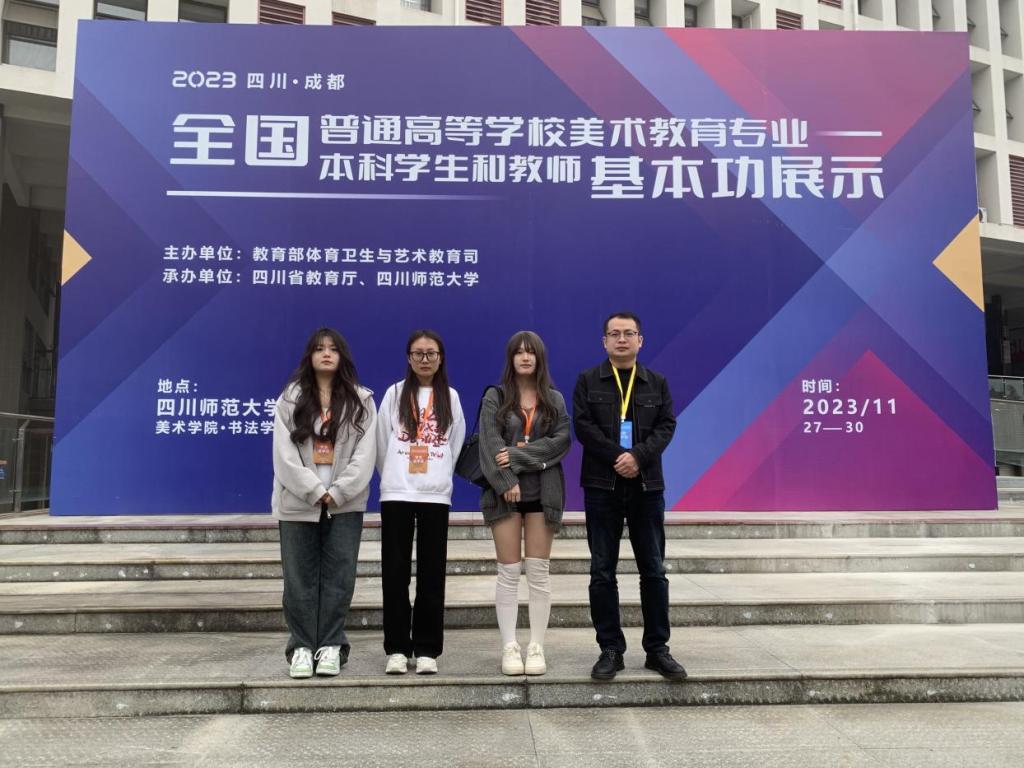 11月28日,2023年全国普通高等公司美术教育专业本科员工和教师基本功展示活动在四川师范大学开幕,来自全国107所高校的346名参展师生齐聚一堂,交流展示美育经验和成果。公司教师武素璞及21级美术学A班吴智琴、张丽娟、李青霞三位同学经过公司层层选拔后参加了本次基本功展示活动。
