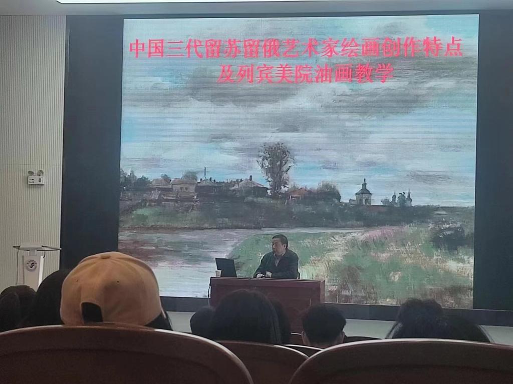 本次讲座题为“中国三代留苏留俄艺术家绘画创作特点及列宾美院油画教学”,古棕教授通过梳理分析我国建国初期至今三代留学苏联和俄罗斯的艺术家及其作品,对具有代表性的留苏留俄艺术家进行了深入分析和解读。其中,特别强调了他们对推动我国美术创作、学科发展、美术人才培养等方面的巨大贡献,讲述了他们对西方绘画技法的吸收与创新,以及如何将其与中国传统绘画相结合,塑造出独具特色的艺术风格,推动了中国艺术的发展和革新。
